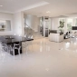 Espaço comercial moderno com piso de porcelanato elegante e durável.